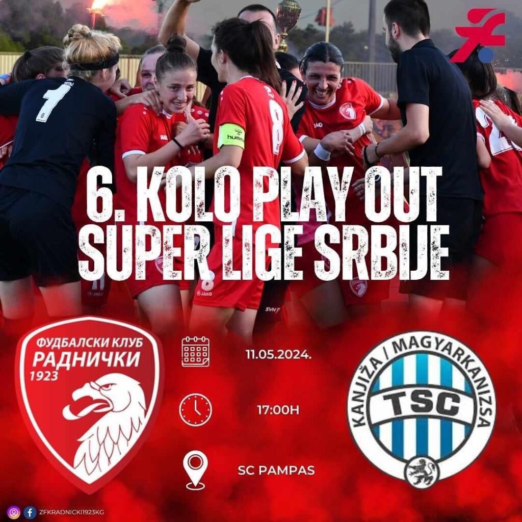 Фудбалерке Радничког 1923 ће, у суботу, 11. маја, на терену Спортског центра „Пампас“, у оквиру 6. кола Супер лиге Србије плеј-аут за жене, одиграти утакмицу против ЖФК ТСЦ од 17 часова.