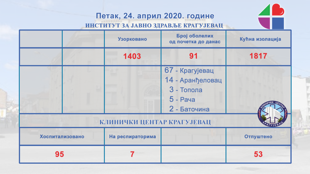 У Клиничком центру на болничком лечењу је 95 оболелих, од којих је 7 на респиратору.