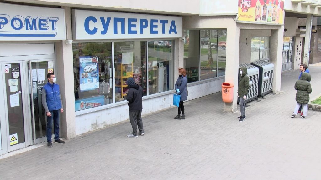 И запослени у малопродајним објектима и грађани поштују мере које је прописао град, па су испред продавница и банака грађани стрпљиво чекали, држећи прописано одстојање.