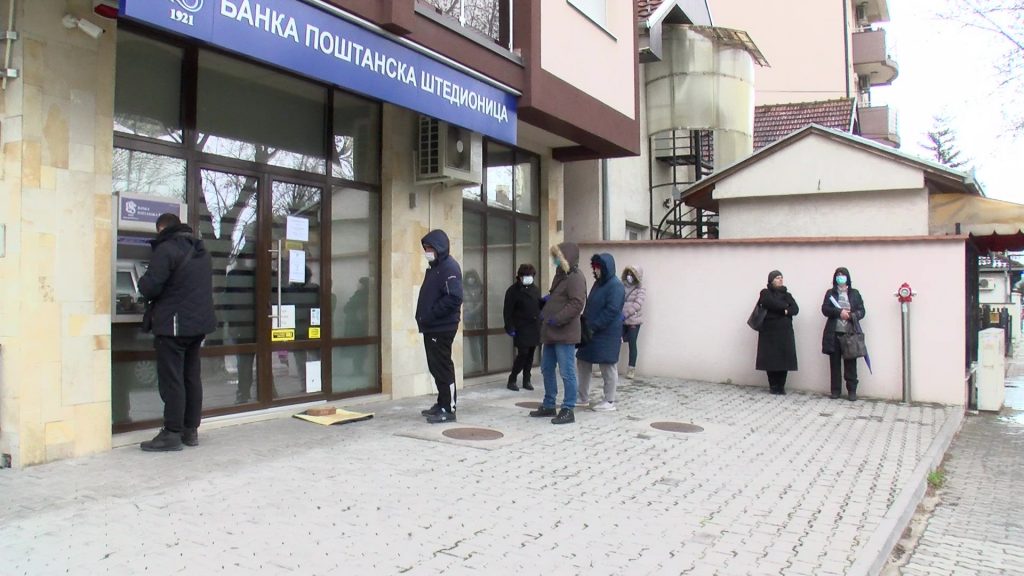 На растојању од један ипо до два метра , грађани који у већини случајева имају маске и рукавице стрпљиво чекају у редовима.
