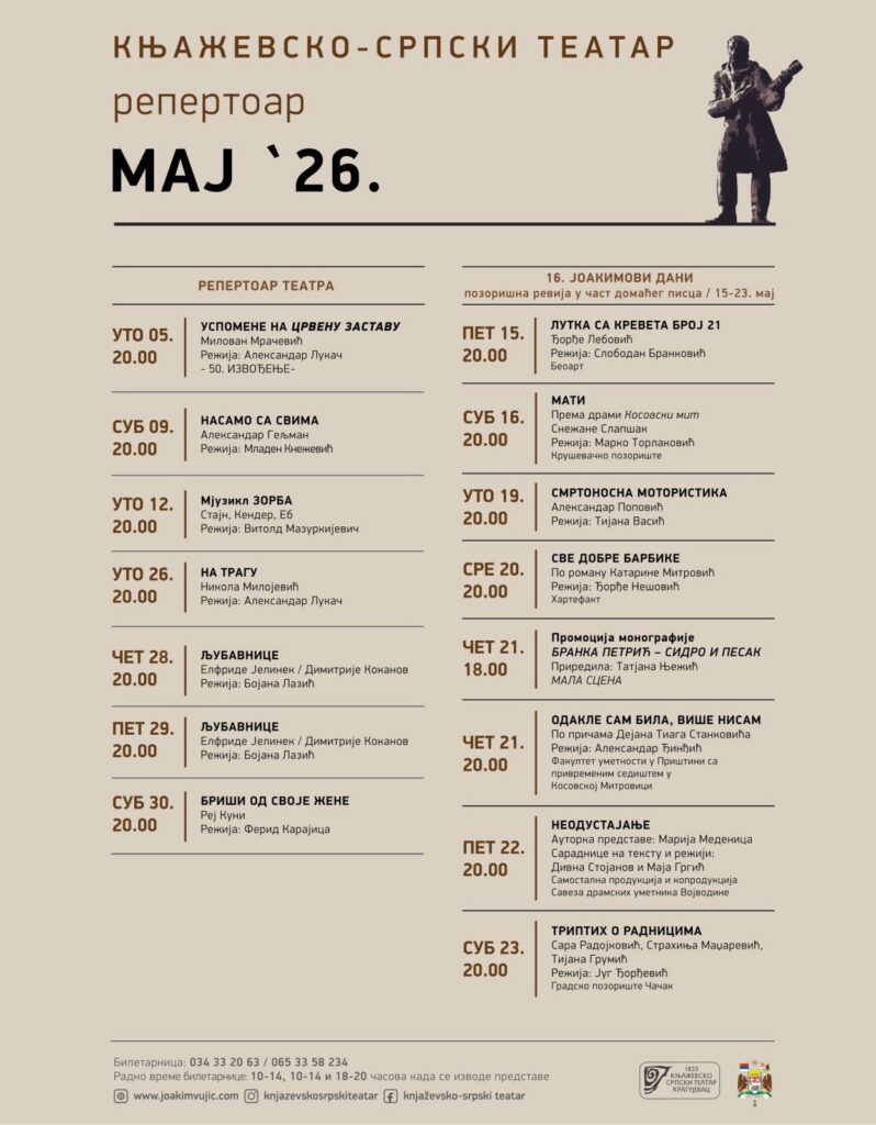 Књажевско-српски театар у оквиру мајских свечаности традиционално обележава Јоакимове дане – ревију позоришних представа у част домаћег писца.