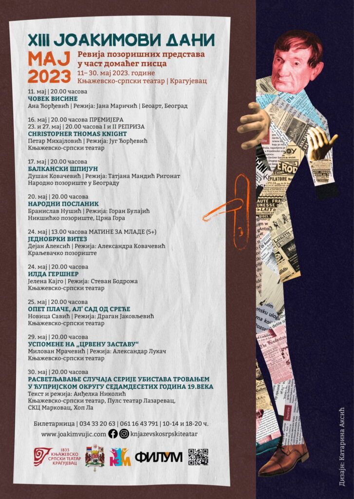 У оквиру Мајских свечаности Књажевско-српски театар традиционално организује „Јоакимове дане“- 13. Ревију позоришних представа у част домаћег писца.