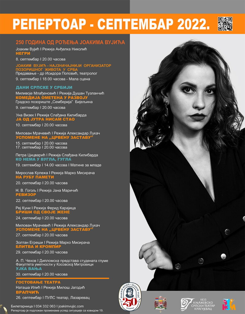 Поводом отварања нове сезоне, 8. септембра, Књажевско-српски театар поклања представу Негри крагујевачкој публици.
