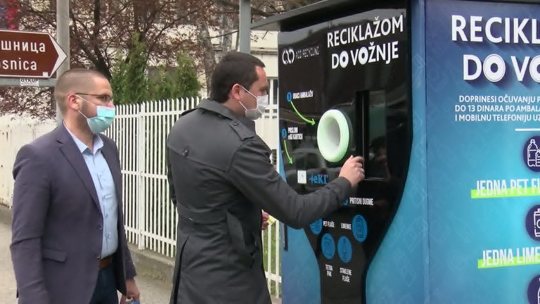 Постављањем пет машина за прикупљање стаклене и тетра-пак амбалаже, ПЕТ пластике и лименки, у Крагујевцу је званично почела реализација програма „Рециклажом до вожње“.