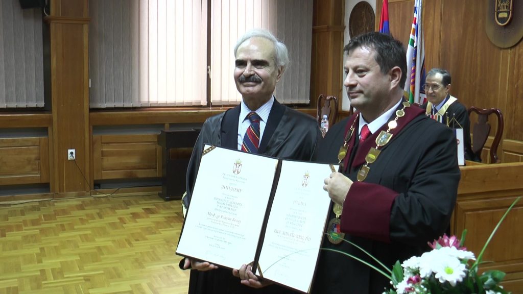 Титулу почасног доктора госту из Америке уручио је ректор крагујевачког Универзитета проф. др Ненад Филиповић.