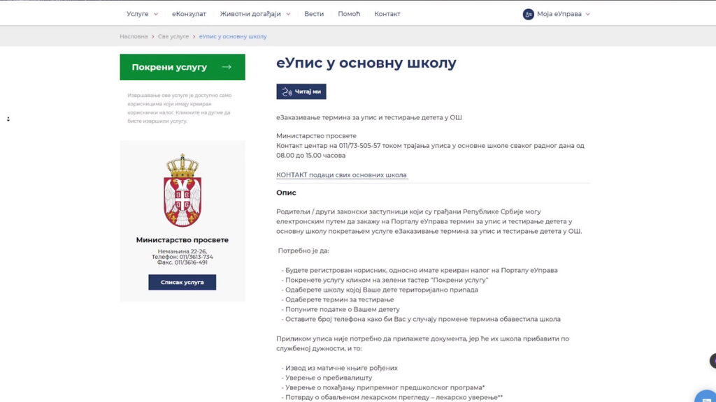 Ово је шеста година заредом да родитељи имају могућност да термин за упис и тестирање будућих првака закажу захваљујући услузи на Порталу еУправа.