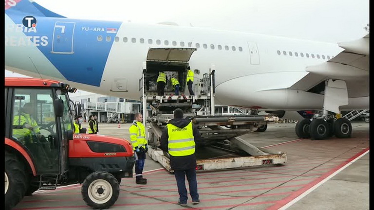 Авион са медицинском опремом, коју је Бахреин донирао Србији за борбу против ковида-19, слетео је јутрос у Београд.