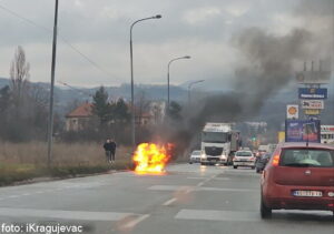 У улици Миодрага Влајића Шуке, код Електрошумадије, изгорео је аутомобил.