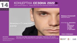 Музички центар Крагујевац, уз подршку Министарства културе и информисања и PhD продукције, у оквиру пројекта “СОЛО “, као део концертне сезоне, организује концерт виолончелисте Немање Станковића.
