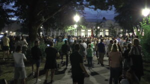 На позив Уједињених зборова Крагујевца, Слободног универзитета и ИТ блокаде, грађани Крагујевца окупили су се вечерас у Малом парку код Градске тржнице.