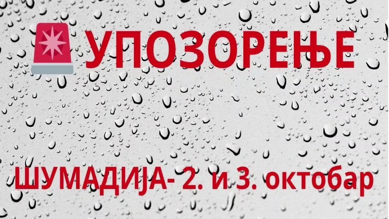 На основу метеоролошког упозорења Републичког хидрометеоролошког завода Србије, за подручје Шумадије за 2. и 3. октобар 2025. године најављене су обилне падавине – локално од 80 до 120 mm кише у периоду од 48 сати, као и могуће формирање снежног покривача у брдско-планинским пределима.