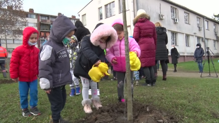 Двориште вртића „Невен“ у насељу Бресница од данас је богатије за неколико садница јасена.